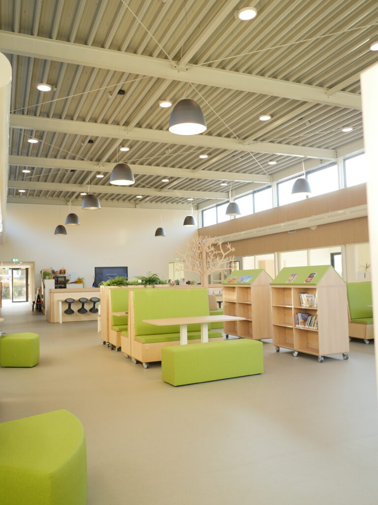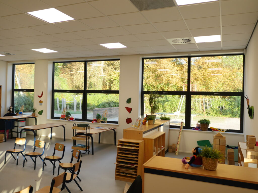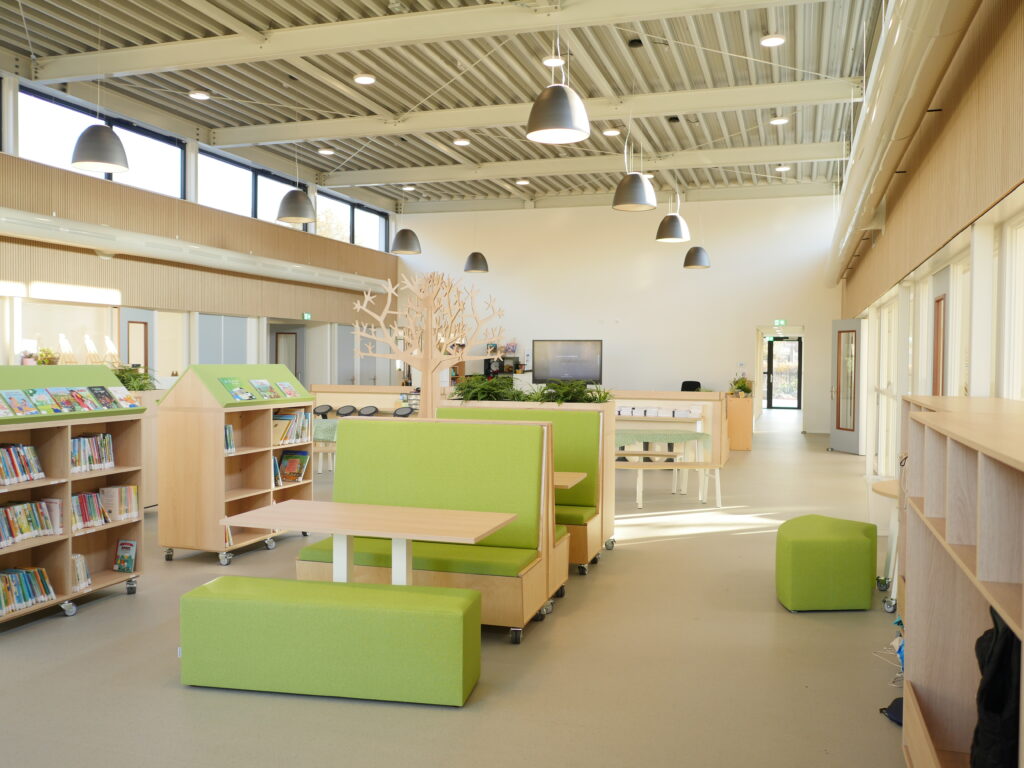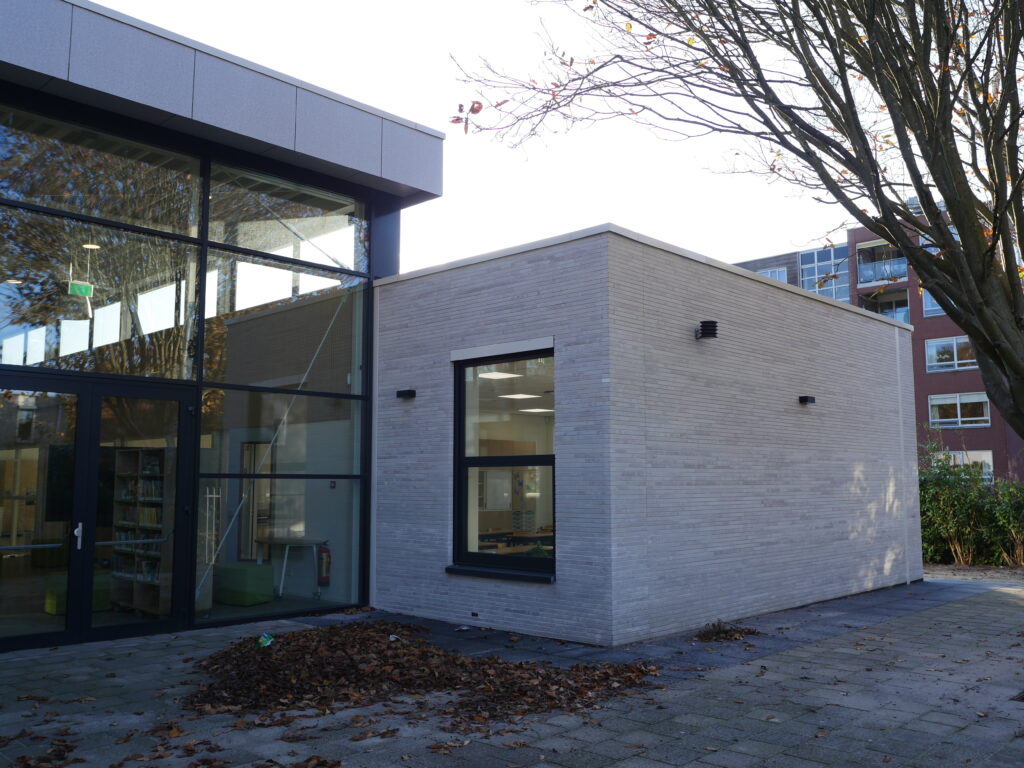 De Timotheusschool in Lelystad is totaal gerenoveerd. Van donkere lage ruimten is een hoge lichte centrale hal gemaakt. De leslokalen hebben een transparante verbinding naar de hal en de overige ruimten. De oude gevel is vervangen door een nieuwe gevel met een modern en strak uiterlijk. Het gebouw is gasloos en volledig duurzaam.